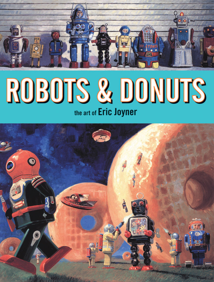 Capturing this period in history became a passion of painter Eric Joyner's and  in Robots and Donuts  he celebrates this forgotten era with images marrying the metal creations with images plucked from his imagination. And, almost always, with donuts. (Why? Well, who doesn't love donuts?) This book also features a look into Joyner's painting style as well as a glimpse at some of his other non-robot themed artwork.